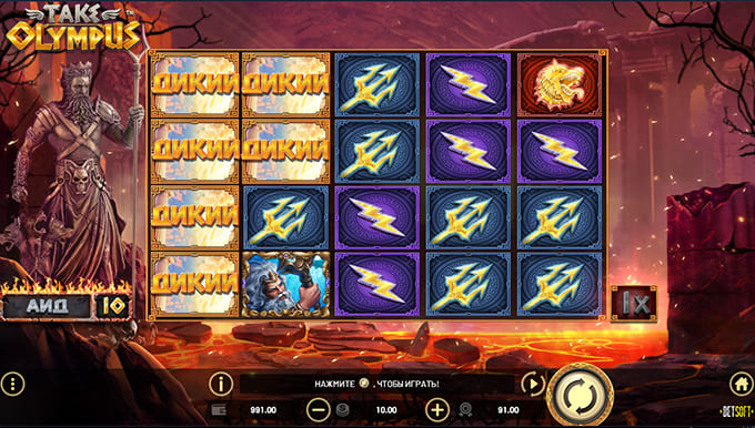 Игровой автомат Take Olympus от Betsoft представляет собой слот с сеткой 5×4 и с 50 линиями выплат. Игра, состоящая из десяти раундов, включает в себя четыре различные опции, Zeus Wilds и дополнительную функцию бесплатных вращений.